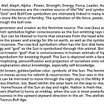 Bull, Cow, Ox, Apis – A, Alef, Aleph, Alpha – Power, Strength, Energy, Force, Leader, Authority, First, “God”. “God”/El/Al/A, Sun and consciousness are the creative source of life/”life” and symbolically correspond to each other. The Sun, “God” and Bull/Cow symbolism are intimately linked in many ways. An ox is a castrated bull, with no more life force of fertility. The symbolism of life force, power, etc., is for the Sun as well, corresponded through the bull-cow.