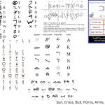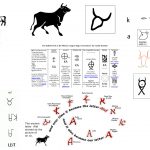 “The Calendar Signs I: Moran. 1) our Roman letter A, 2) Old Hebrew Aleph- the “ox,” 3) modern Greek Alpha, 4) Old Greek Alpha, 5) astronomical symbol for the constellation Taurus, 6) Chinese lunar constellation symbol, 7) Chinese lunar zodiac symbol niú – the “ox” and 8) Chinese solar zodiac symbol ch’ou – “old” or “original.” (after Moran)”