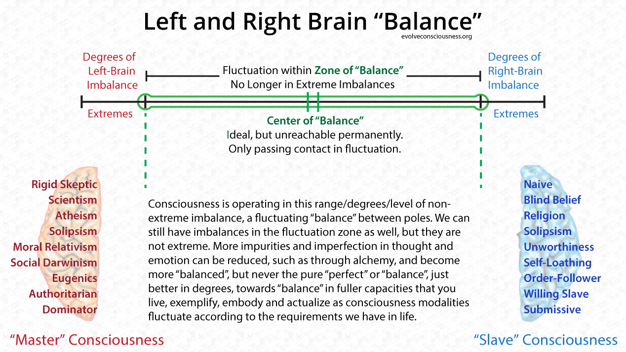 Here is an infographic I made to express a more accurate understanding of how the Left-Brain and Right-Brain “Balance” and Imbalance work.