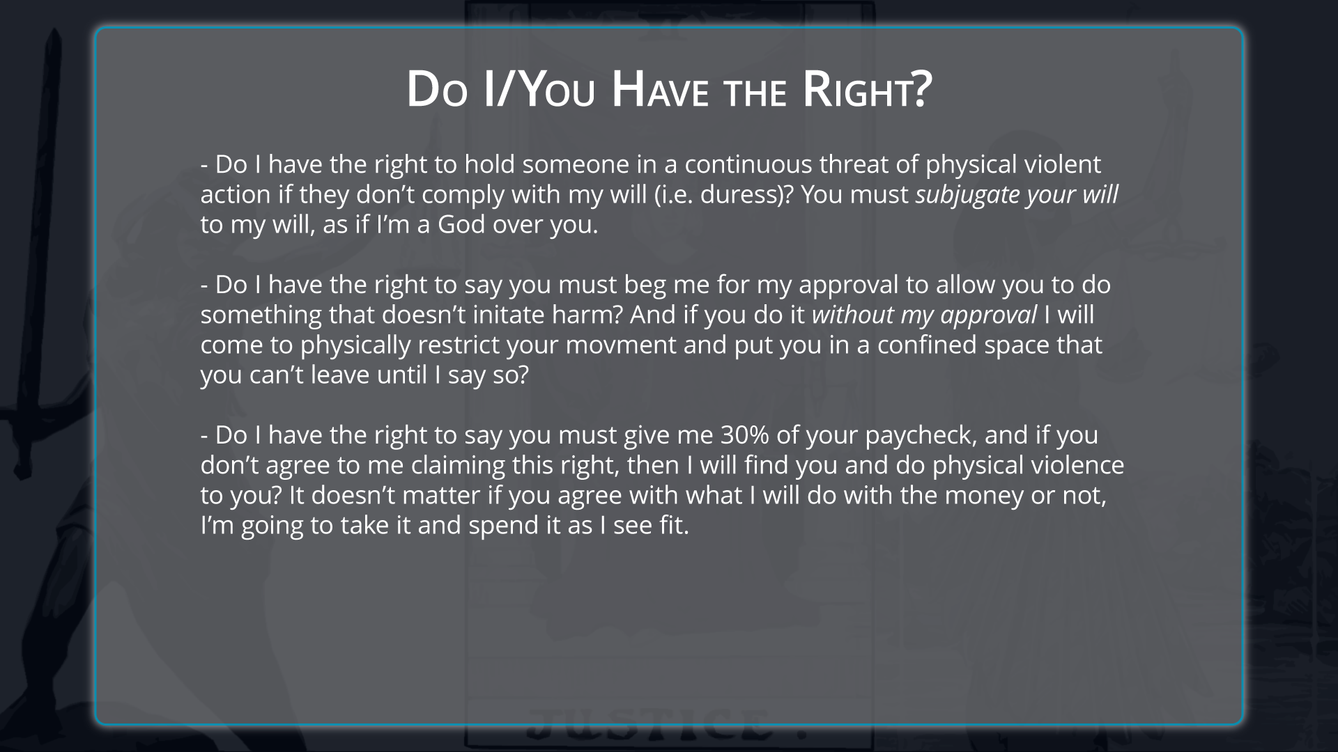 Rights-17,-Do-I-Have-the-Right 2023/02/22 Kris Nelson Previous Next Return to Natural Law – The Science of Morality, Part 1: Rights
