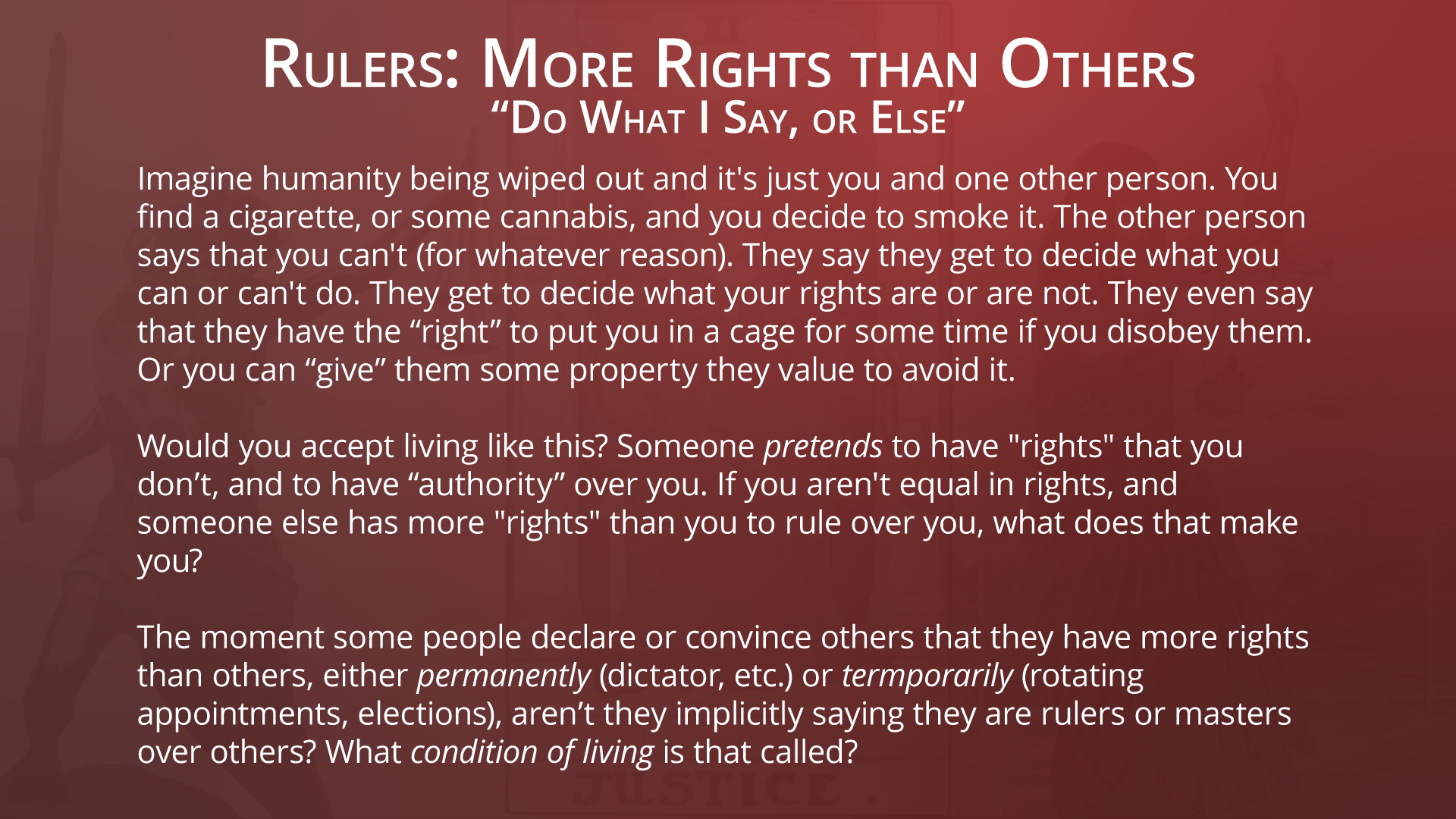 Slavery-04,-Ruler,-More-Rights-than-Others 2023/04/09 Kris Nelson Previous Next Return to Natural Law – The Science of Morality, Part 2: Slavery