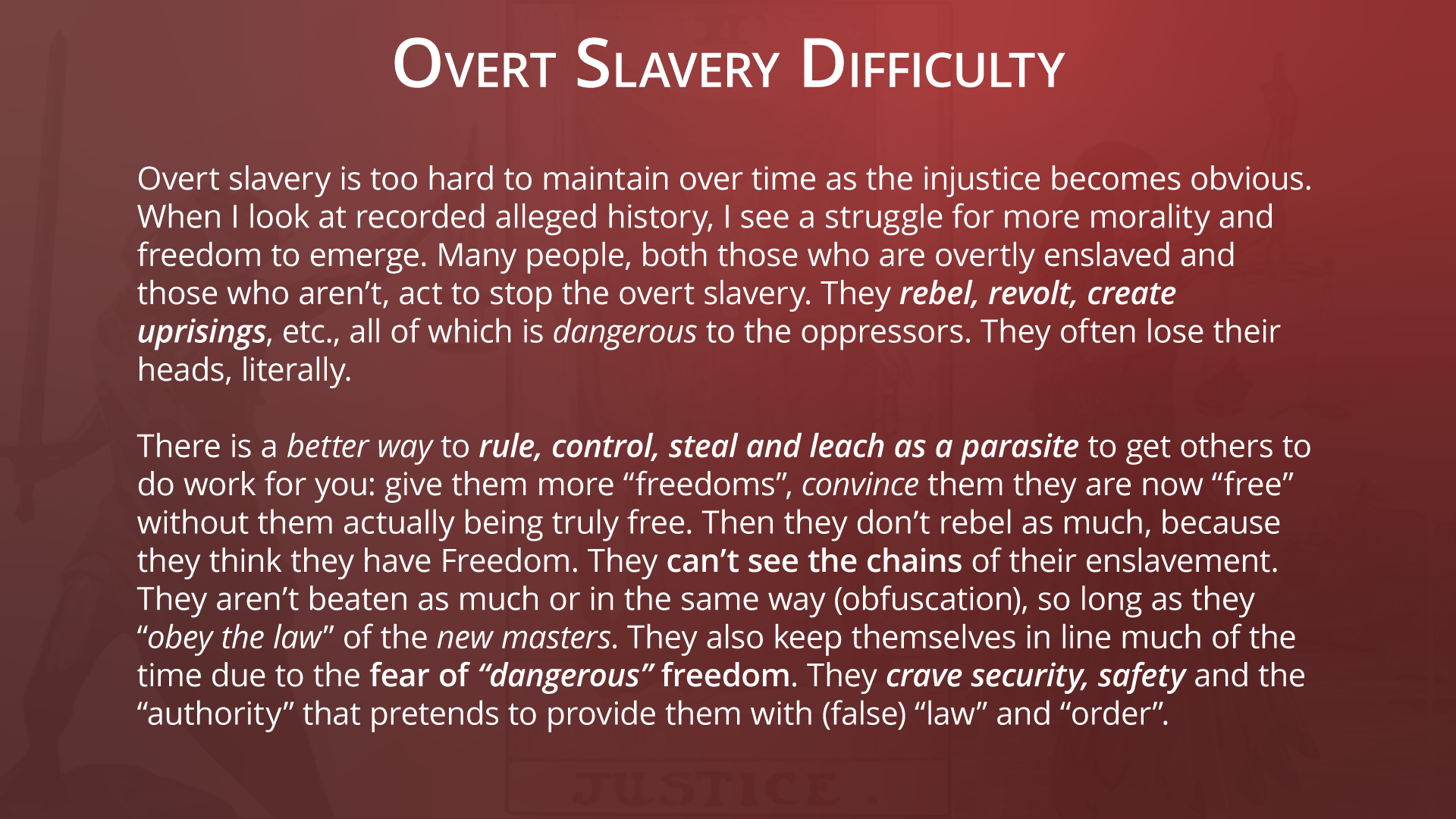 Slavery-13,-Overt-Slavery-Difficult 2023/04/09 Kris Nelson Previous Next Return to Natural Law – The Science of Morality, Part 2: Slavery