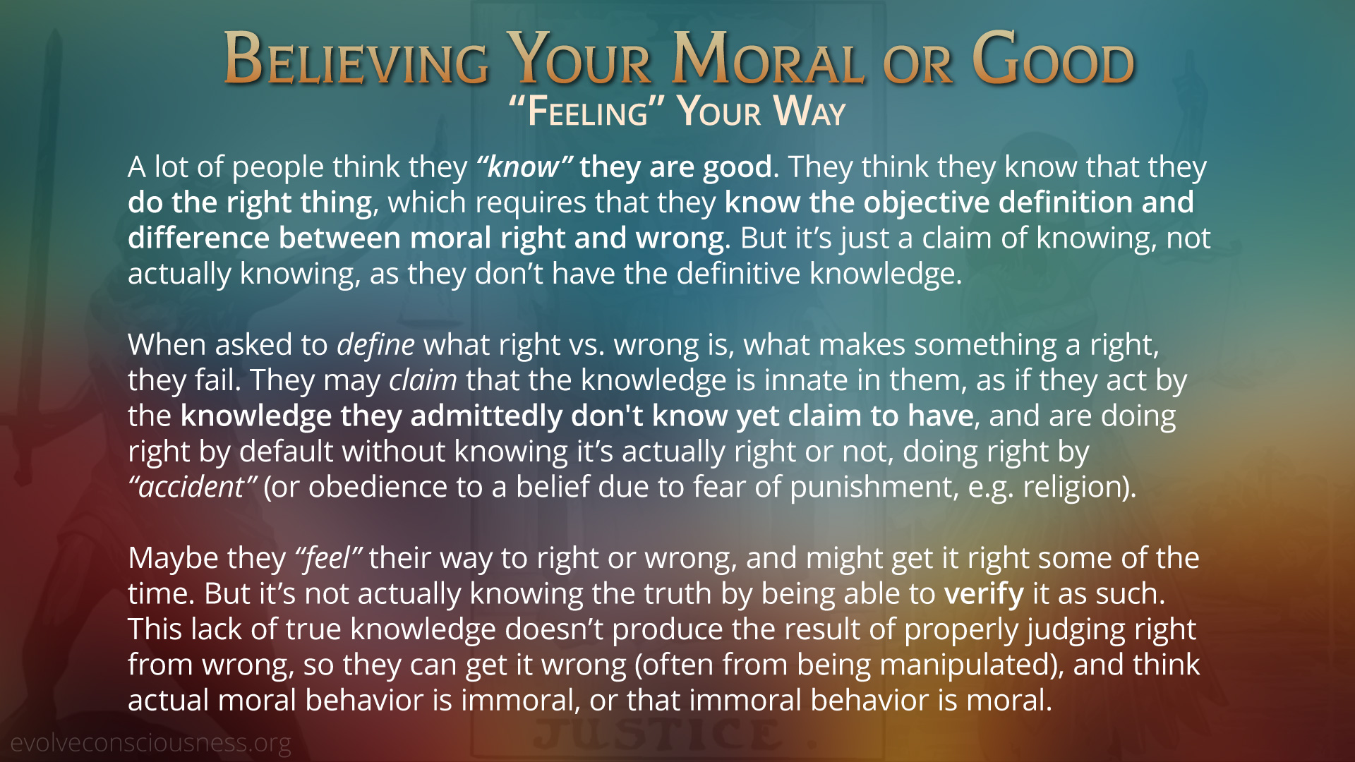 Morality-055,-Believing-Your-Moral-or-Good 2024/04/27 Kris Nelson Previous Next Return to Natural Law – The Science of Morality, Part 4: Morality