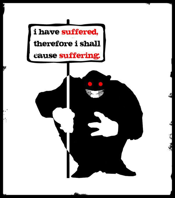 People who don’t suffer don’t create suffering for others to suffer by their actions. Only suffering people create suffering for others. The above infographic illustrates how we suffer ourselves and then we continue to create suffering for others, as an abuse-victim perpetuation cycle.