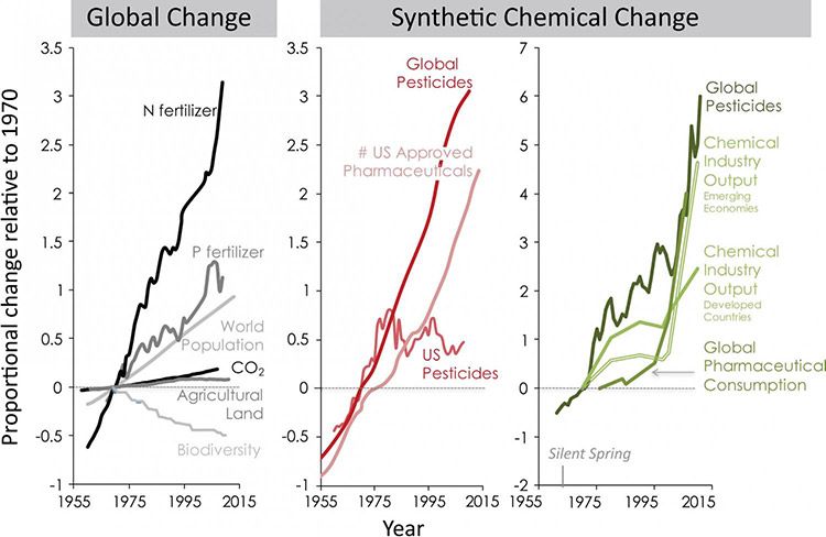 According to the co-author Emma J. Rosi, ecologist from the Cary Institute, global change assessments are ignoring synthetic chemical pollution despite the increasing rate of use is more rapid than other agents of global change, like CO2 emissions or nutrient pollution.