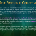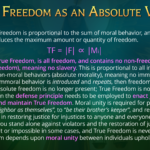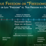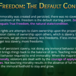 Preserving and restoring freedom comes from free will. Free will has consent. Violating someone’s consent for what they allow to be done with their rightful property is taking that property and freedom away from them (theft), and creating a temporary or persistent condition of the opposite of freedom: slavery. A temporary theft is an injustice that temporarily degrades True Freedom, while persistent conditions of theft create the condition of persistent slavery.