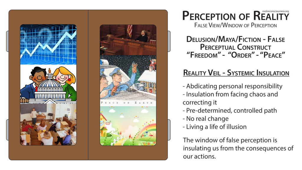There is a false perceptual construct that is created. This is the fiction of the imagery we have about how “ordered”, “good” and “free” we are. This is the the maya, the delusion created by a false perception that doesn’t recognize reality as it is. As a result, there is a reality veil that acts as continuous systemic insulation keeping us living a life of illusion where we are living predetermined and control paths where things don’t really change at the core foundational level of how we live and behave, despite technological and other advancements moving much quicker.